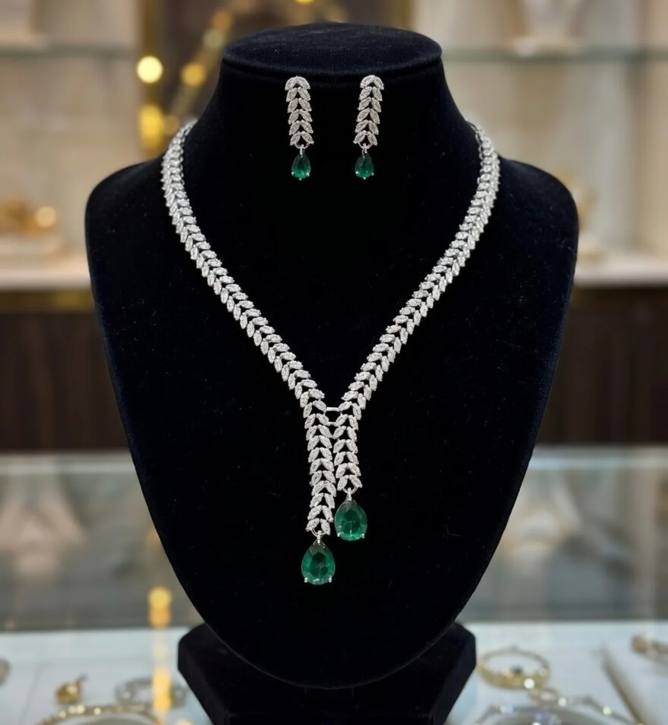 Be the first to review “Elegant Crystal Necklace & Earring Set with Emerald Drops”